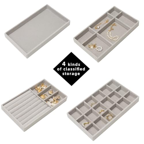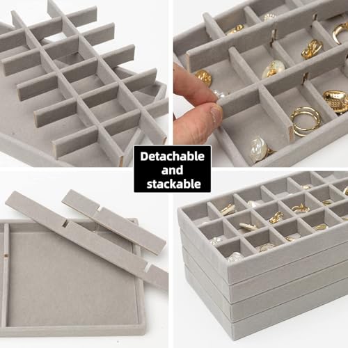 BRAHMBHAV - Velvet Jewelry Trays Organizer, Stackable Jewelry Display Case Drawer Inserts Tray, Necklace Storage Holder for Earring, Ring, Bracelet, Brooch, Watch, Multi-slot Design (Grey, 2)