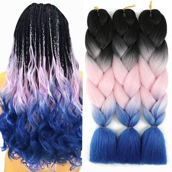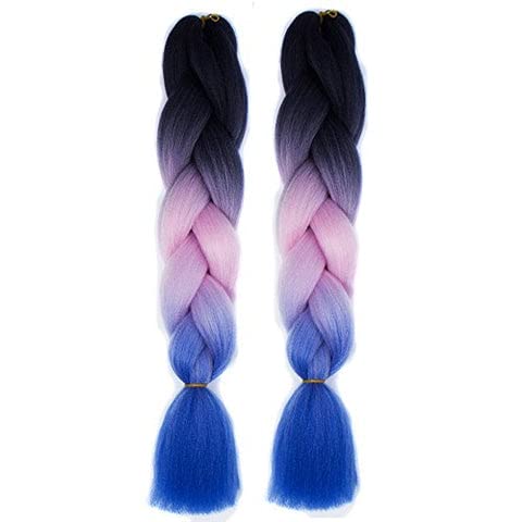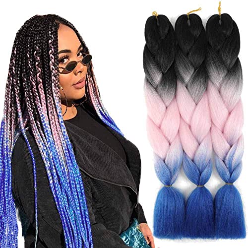 Generic - Braid Hair Extensions 24 inch Long Colorful Box Braids Crochet Hair for Women Kids DIY High Temperature Synthetic Fiber 3 Bundle color black+pink+blue