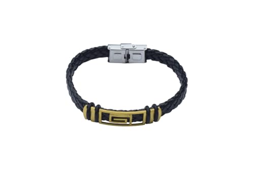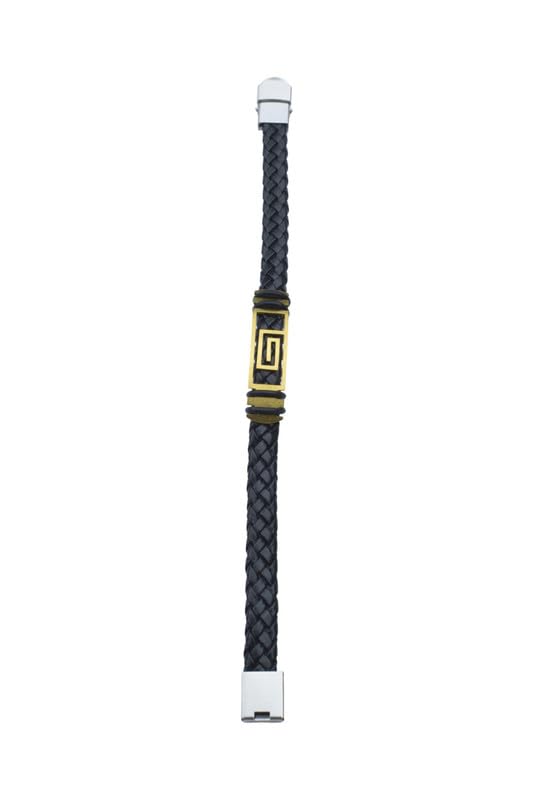 Generic - Braided Bracelet with Gold-Tone Greek Key ‘G’ Design for Men - Black Gold