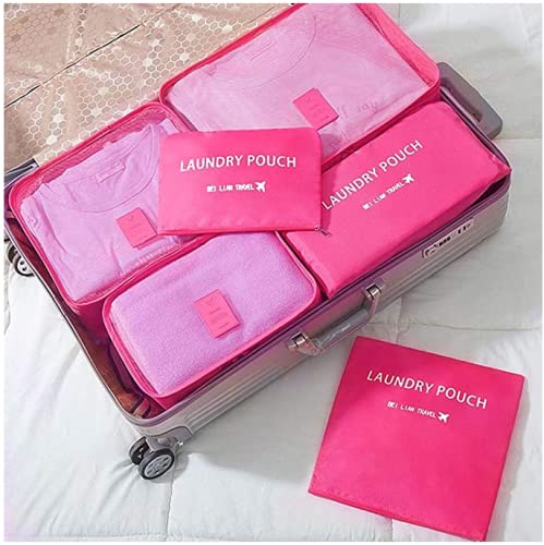 Brandilo - Packing Cube Travel Carry-on Luggage Organizer, Suitcase Pouch Organizers, Luggage Cubes, Laundry Pouch Travel Bag, Set of 6 traveling Cubes (Hot Pink)