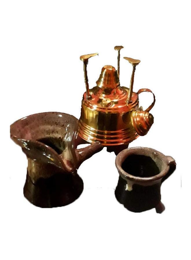generic - Brass Burner With Pottery Coffee Pot Gold