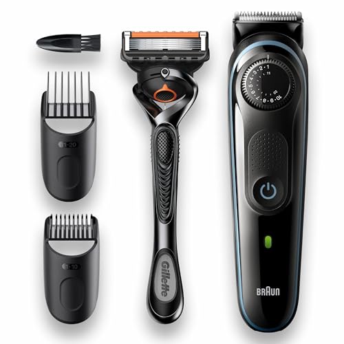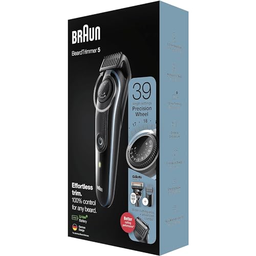 Braun - Braun Beard Trimmer 5 BT5340 With 39 Length Settings Precision Wheel, 2 attachments and Gillette ProGlide razor, Corded & Cordless Use, Fully Washable