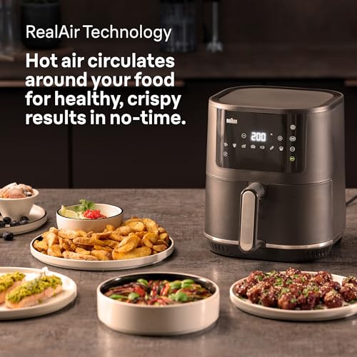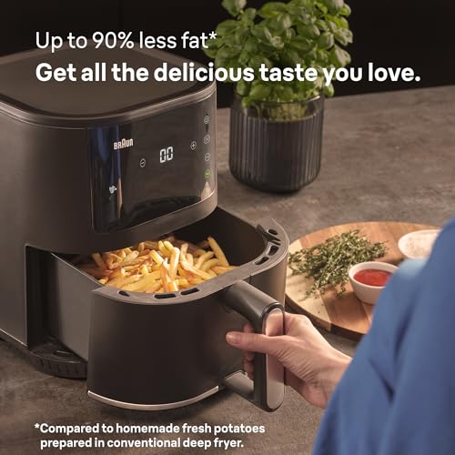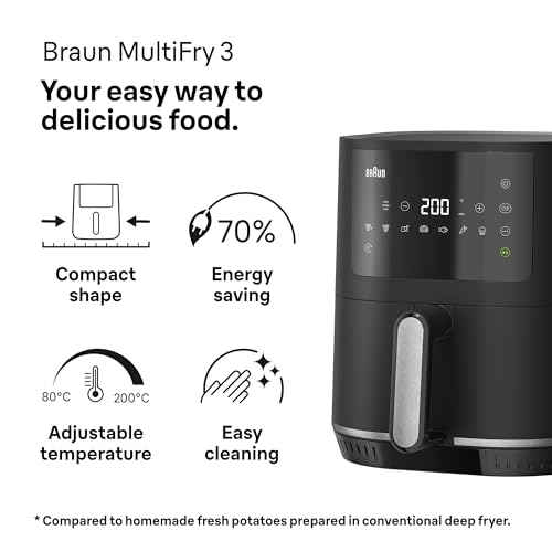 Braun - Braun MultiFry 3 HF 3030 Hot Air Fryer, 4.3 L, 1500 W, Digital Temperature Control, 80-200 °C, Timer, 8 Programmes, Touch Control, Non-Stick Coating, Cooking Basket & Grate, Dishwasher Safe, Black