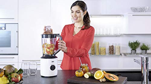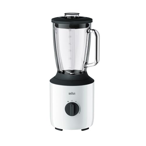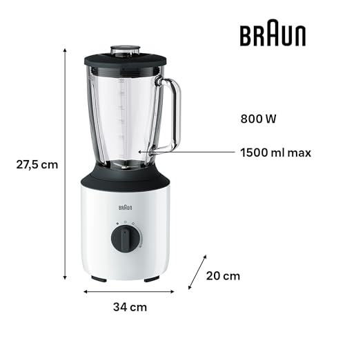 Braun - خلاط سطح الطاولة باور بليند 3، سعة 1.5 لتر، 800 وات، وظيفة النبض، آمن للاستخدام في غسالة الصحون، أبيض من براون JB3150WH