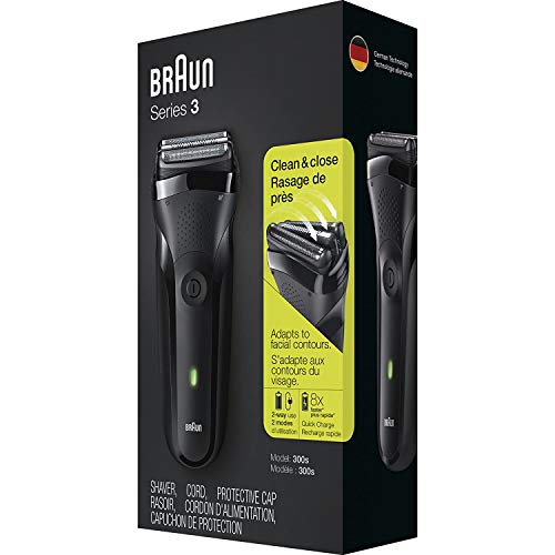 Braun - Braun Series 3 300s Rechargeable Electric Foil Shaver With 3 Flexible Blades, Protection Cap, Black
