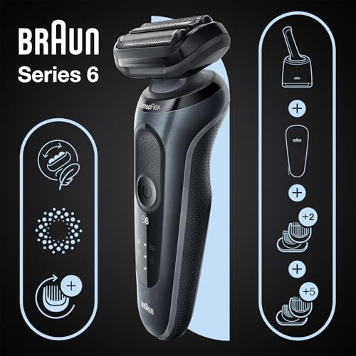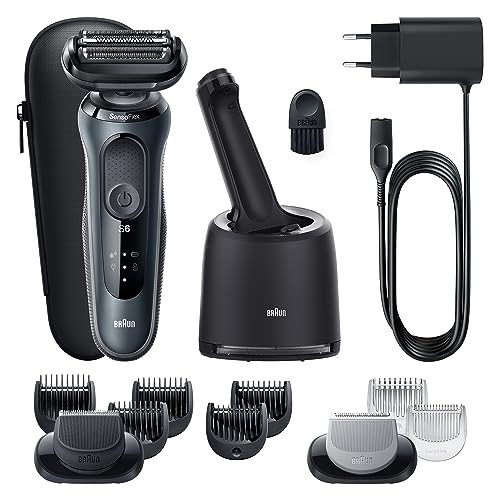 Braun - Braun Series 6 61-N7650cc Electric Shaver for Men with SensoFlex, AutoSense Technology, SmartCare Cleaning Center, Beard Trimmer, Wet & Dry Use, Rechargeable, Black/Blue – 61-N7650cc