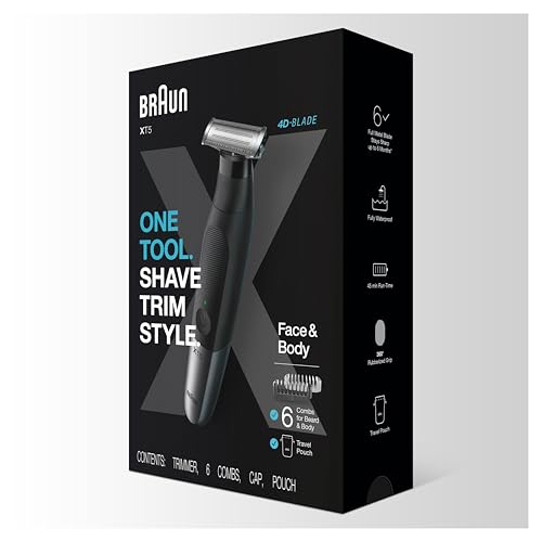 Braun - Braun Series XT5 – Beard Trimmer, Shaver and Electric Razor for Men, Body Grooming Kit for Manscaping, Durable One Blade with Travel Pouch, One Tool for Stubble, Hair, Groin, Underarms, XT5200