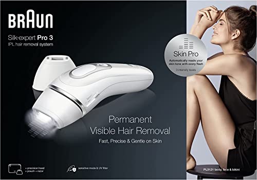 Braun - Braun Silk·Expert Pro 3 PL3121 - Latest Generation IPL For Women And Men, At Home Hair Removal Device, White/Silver, With Pouch, Precision Head And Venus Razor