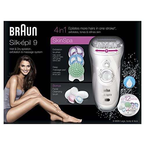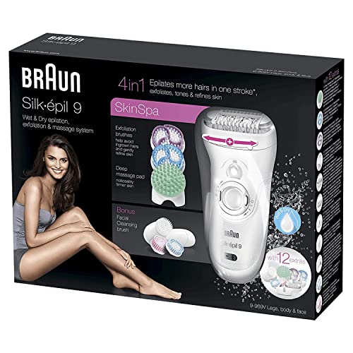 Braun - Braun Silk-épil 9 SkinSpa 9-969V Wet&Dry Epilator Beauty Set with Body Exfoliation Brushes, Deep Massage Pad and Facial Brushes. 12 extras