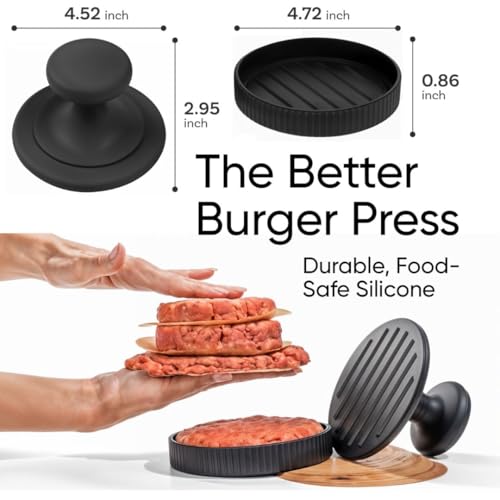 - EASY TO CLEAN BURGER SHAPER: The non-porous silicone of our burger smasher repels food residue, preventing absorption and making cleanup a breeze. Being dishwasher safe, this burger patty maker it is easy to clean. Our hamburger press for your griddle saves you effort and valuable time.