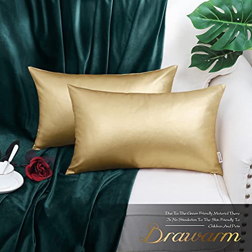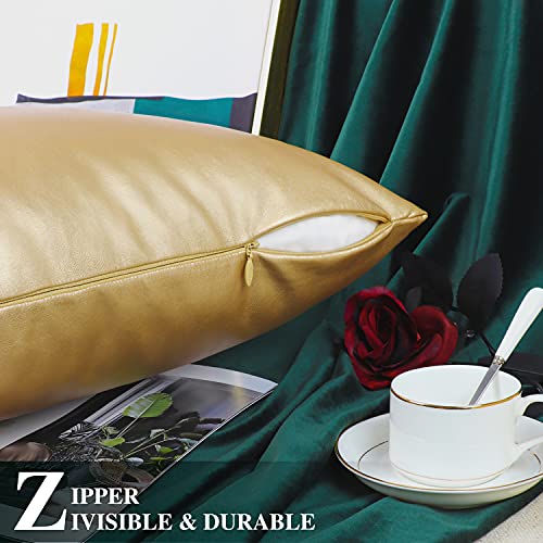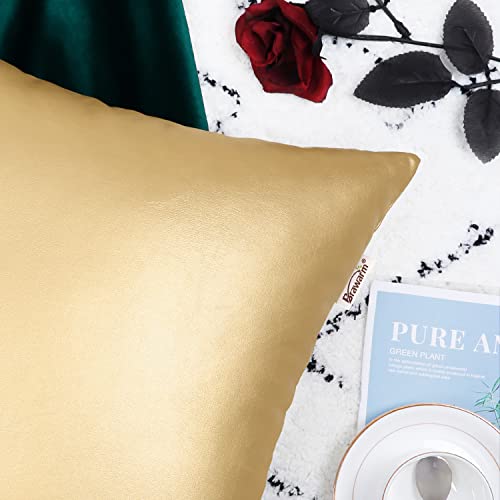 BRAWARM - BRAWARM Decorative Throw Pillow Covers, Faux Leather Throw Pillow Cushion Covers, Solid Faux Leather Couch Cases for Living Room Garden Bed, Gold, 30cm x 50cm, Pack of 2