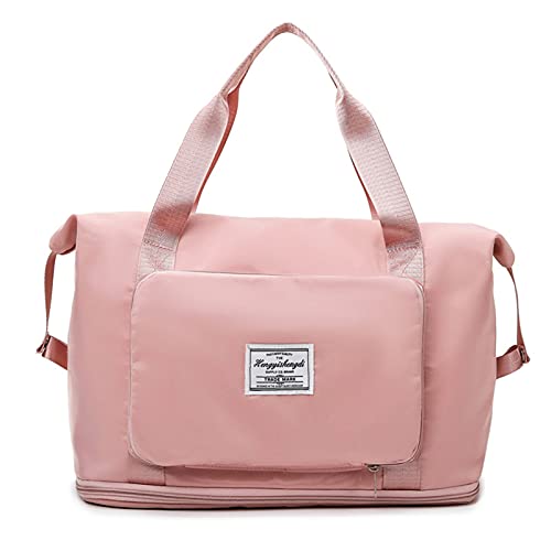 Brawdress - شنطة رياضية ذات سعة كبيرة للنساء قابلة للطي للسفر كتف من قماش اكسفورد المقاومة للماء لعطلة نهاية الاسبوع للتمدد للجنسين زهري فاتح براودريس
