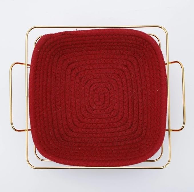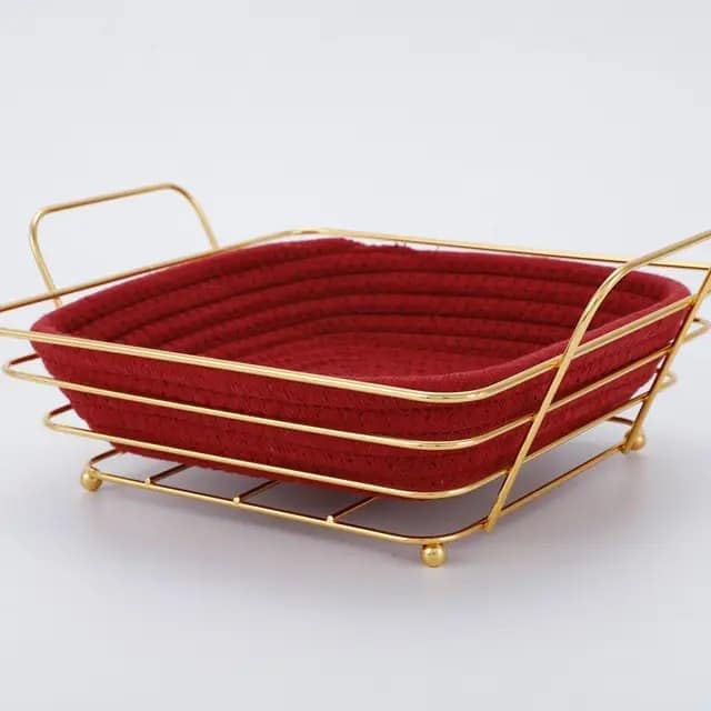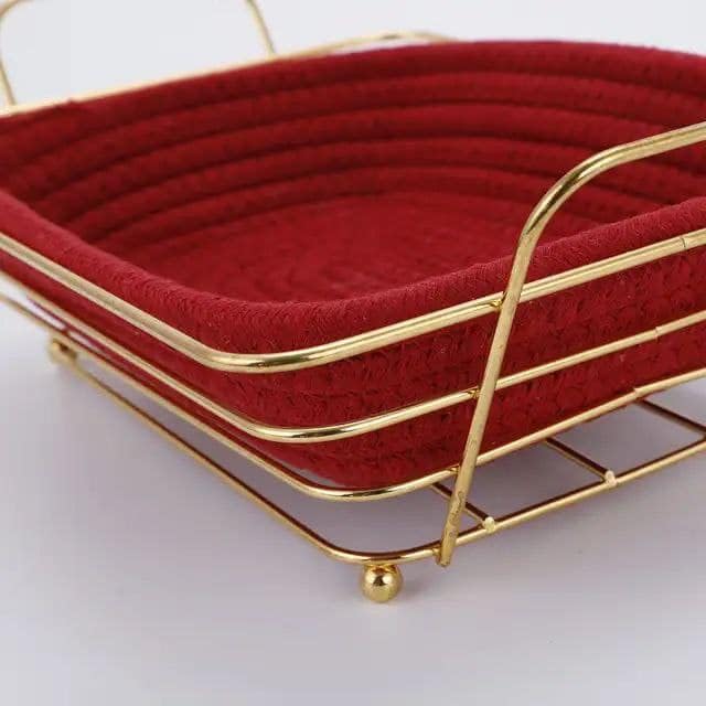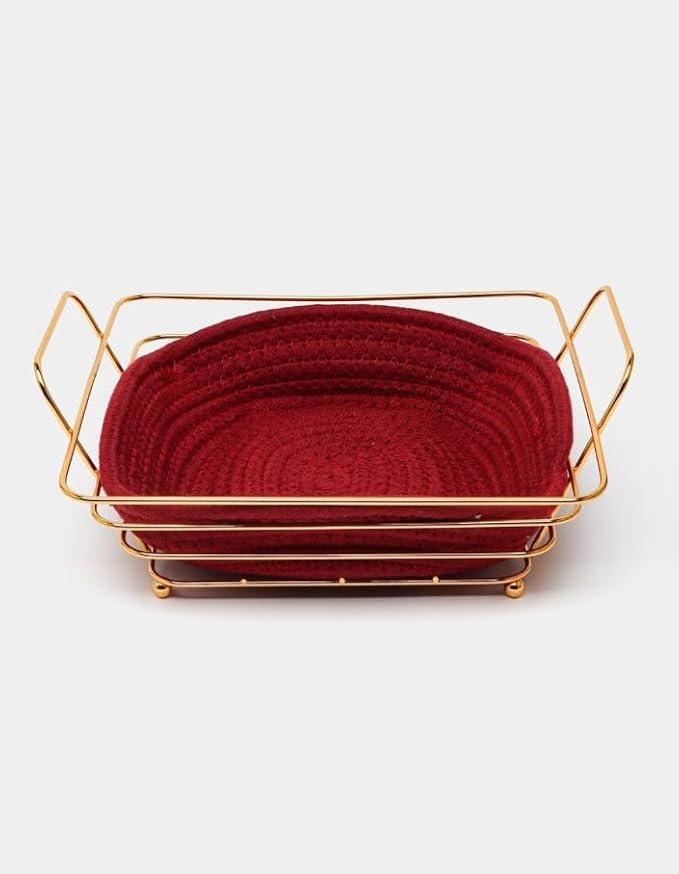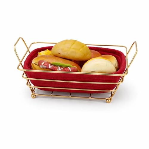 Generic - Bread Basket Gold Wire Serving Basket With Removable Fabric Liner, Fruit and Vegetable Holder Tray for Kitchen Countertop, Dining Table and Parties, (Red)