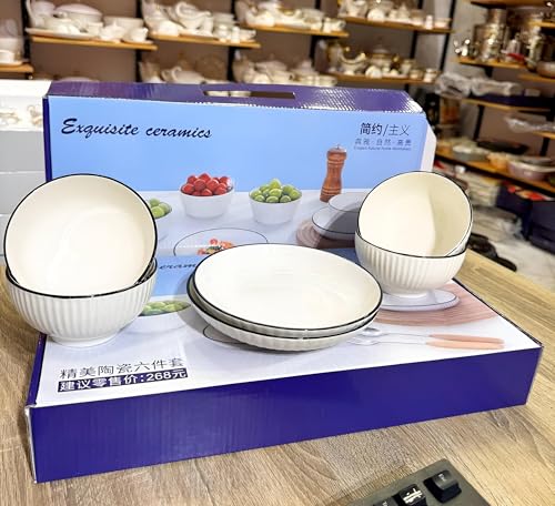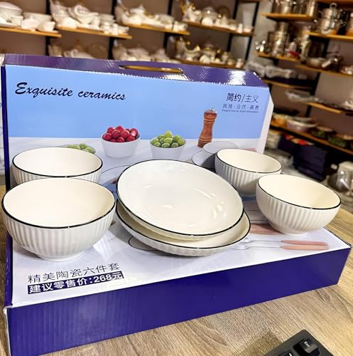 - Consists of 6 carefully selected pieces, including 4 bowls for versatile serving and 2 flat plates for a stylish setup.