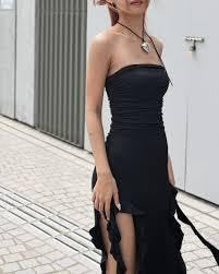 Generic - فستان Y2K بخياطة ملفوفة على الصدر مع فتحة ساق عارية - لمعان معدني، قصة عالية الخصر، حاشية فضفاضة لمظهر جريء في الليل