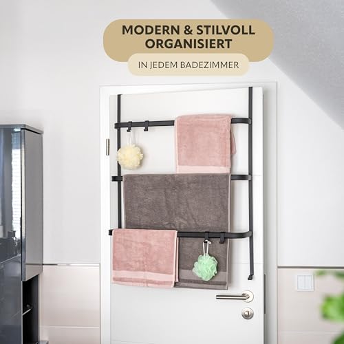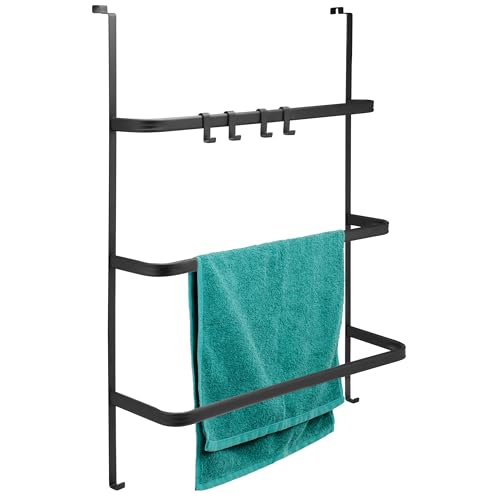 bremermann - bremermann® Door Hanging Shelf, Door Towel Rail with 4 Practical Hooks (Black)