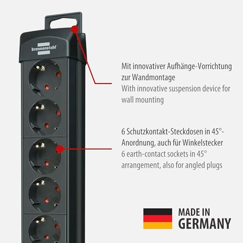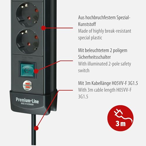 Brennenstuhl - Brennenstuhl Premium-Line Power Strip with 6 Sockets (3 m Cable with Switch, Made in Germany) Black