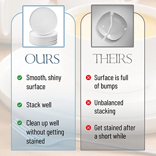 Brew To A Tea - اطباق عشاء بيضاء من بي تي ايه مجموعة 6 قطع 10.6 انش بورسلين ابيض طقم مطاعم البورسلين طبق