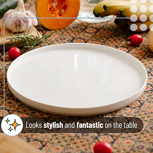 - حجم مثالي: يبلغ قطر الأطباق 10.6 انش، مما يوفر مساحة واسعة لحمل وجباتك المفضلة. الحجم مثالي لإعداد طاولة عصري وبسيط، مما يجعل عرض طعامك يبدو أكثر جاذبية.