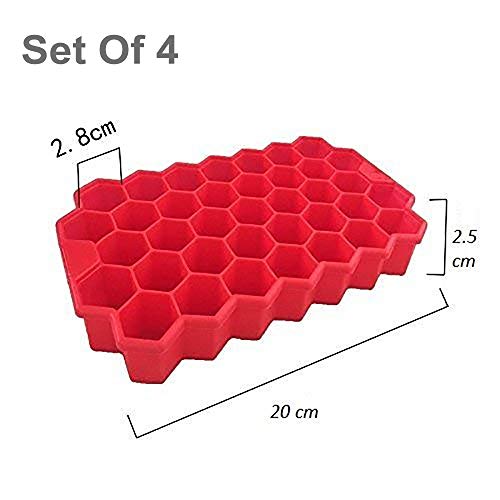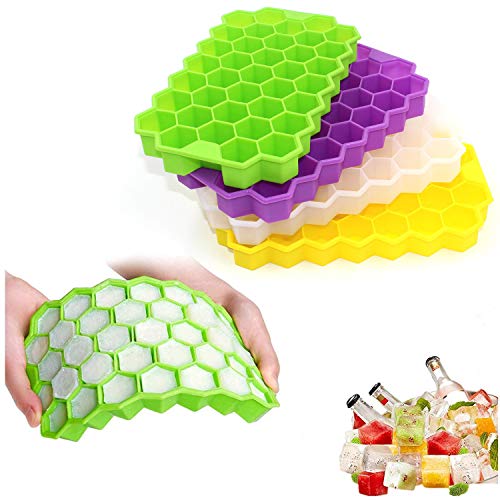 Brezzycloud - 4 Pieces Flexible Silicone Honeycomb Shape Ice Cube Tray - 37 Grids Cavity Mold for Cocktail, Whiskey, Coffee, Fruit Juice, Soft Drink (Set of 4, Multi Color)