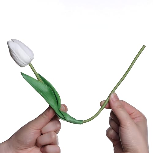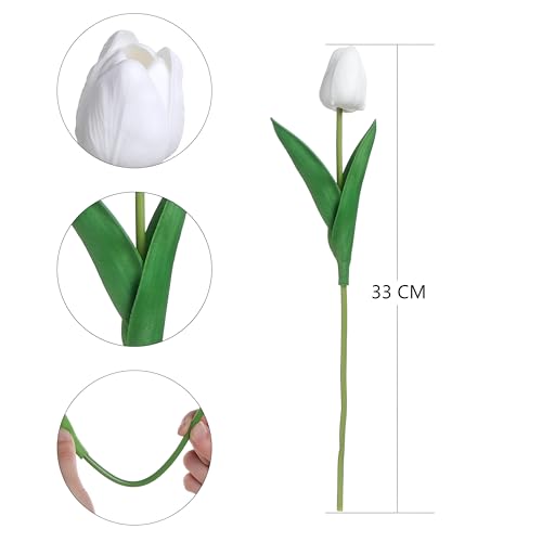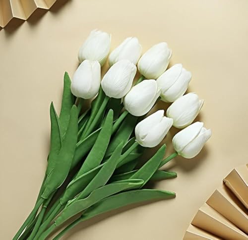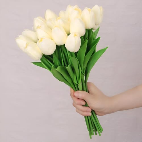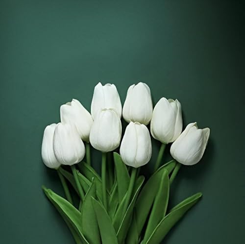 Generic - زهور توليب لاتكس بيضاء زاهية - زهور توليب صناعية متعددة الاستخدامات لحفلات الزفاف والحفلات وديكور المكتب مع لمسة من الطبيعة والأناقة (20 زهرة)