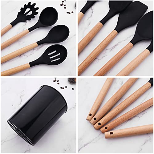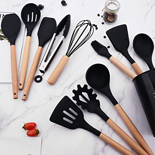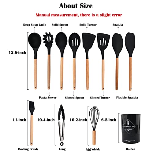 - Wooden handle --- Wooden handle is heat-ristant. hanging hole on each handle for convenient storage organization, kitchen gadgets is dishwasher safe & easy cleaning. Black energize your kitchen,enjoy you cooking.