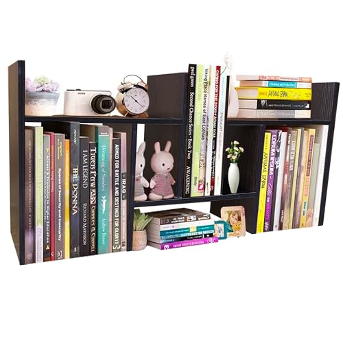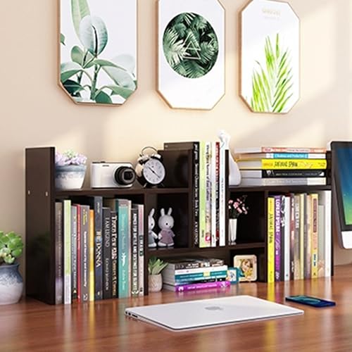 BRILENS - Desktop Bookshelf Desk Storage Organizer Adjustable Wood Desktop Display Shelf Rack Counter Office Storage Rack Top Bookcase - Free Style Display Natural Stand Office Supplies Desk Organizer