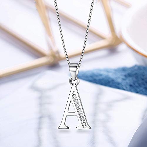 BriLove - BriLove 925 Sterling Silver Cubic Zirconia 26 Letters Name Personalized Charm Statement Pendant Initial A Necklace