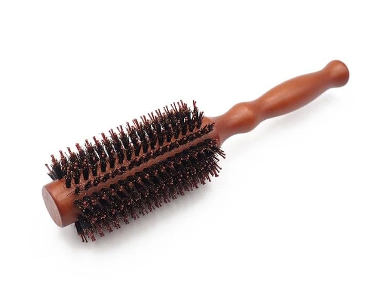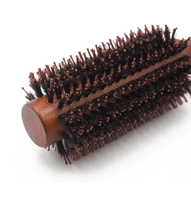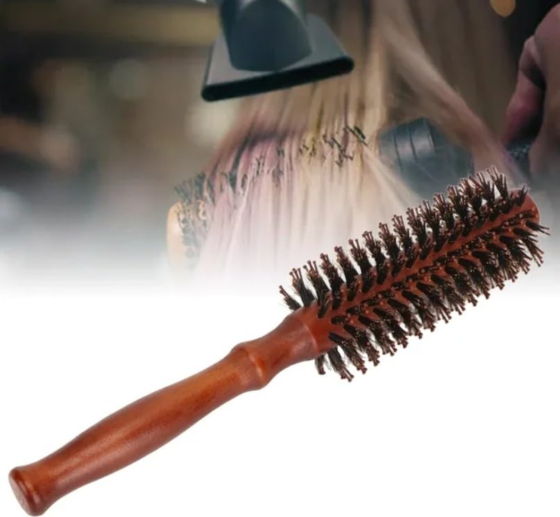 Generic - Bristle Round Brush with Wooden Handle, Curling Comb for Blow Drying, Antistatic Wooden Hair Brush for Straightening Curling Volumizing and Detangling-1 PC