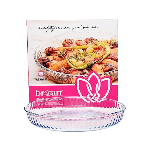 Brart - صينية فرن زجاجية دائرية من برو ارت / 318.5 ملم / 2950 سم مكعب - 3 لتر/ تصميم أنيق، علامة تجارية موثوقة، شكل جذاب/مواد مرتفعة الجودة