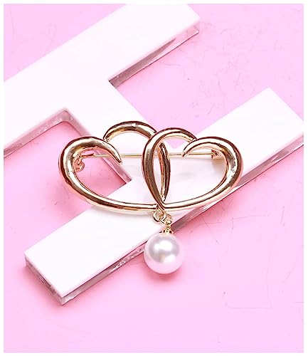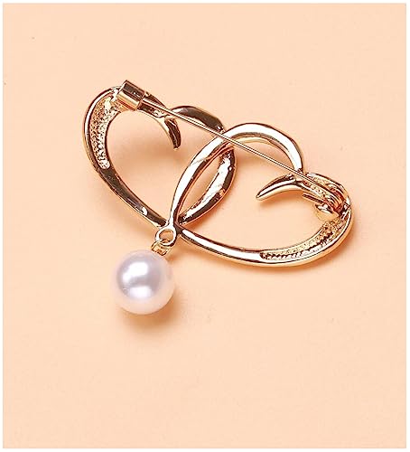 Generic - Brooch Women Heart Design Faux Pearl Brooch Pin Gold Plated Brass