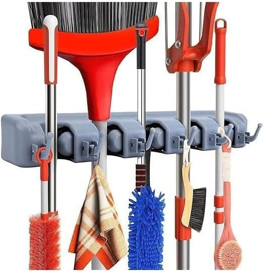- 6 Hooks and 5 Grippers: Features 6 sturdy hooks for hanging tools and 5 grippers to securely hold brooms, mops, and other handles.