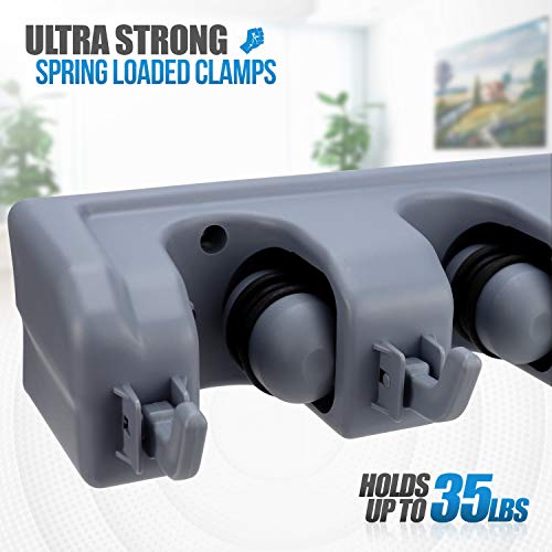 - NO SLIP: Made with an individual spring loaded mechanism for each mop slot, our organizer holds each mop or broom in its place so that you can be worry free of ruining your tools. This mechanism also hold wet tools with ease as it will apply pressure on the tool while it is in place