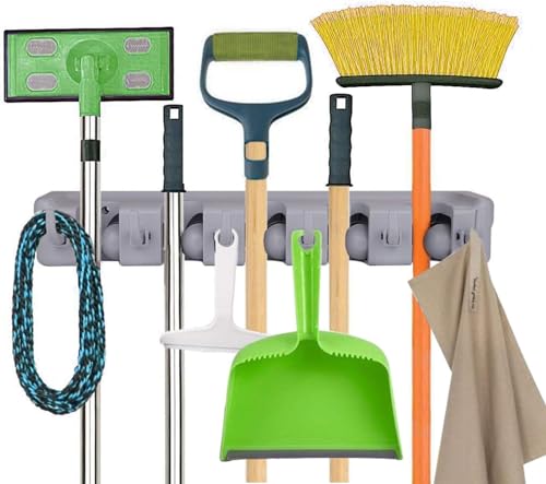 - COMPLETE ORGANIZATION OF YOUR CLEANSERS: All of the mess! This five-step stand provides you with an organized solution to hanging hand brooms, regular brooms, shovel (spray), floor squeegee, cleaning brushes and more in one place, providing a large floor space and easy to access any tool you need in seconds without searching or tripping.