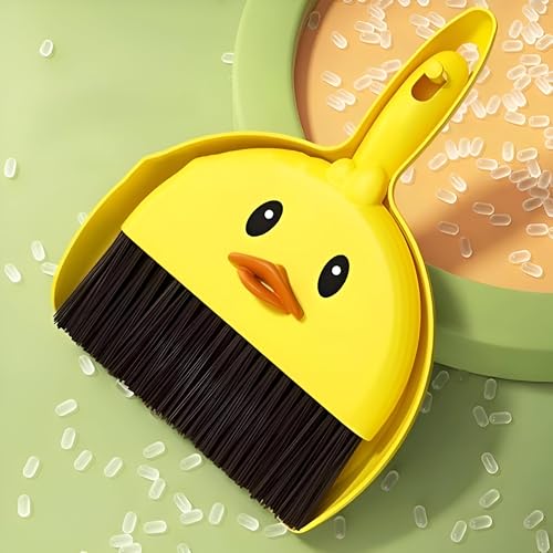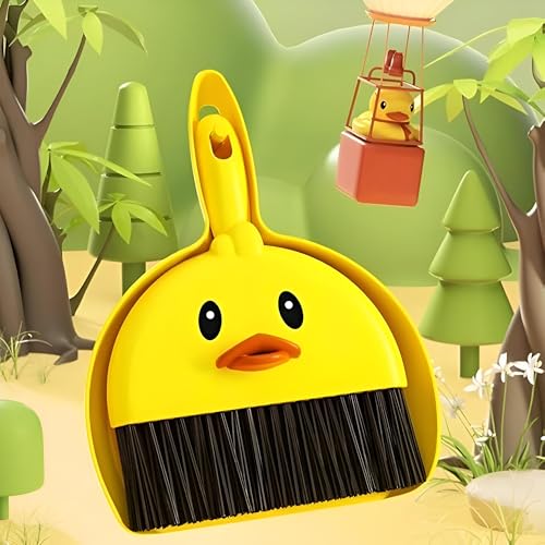 Generic - Broom Set - Durable plastic broom and dustpan combo with cheerful duck design, perfect for easy cleaning in home and kitchen use, lightweight and ergonomic handle style color yellow