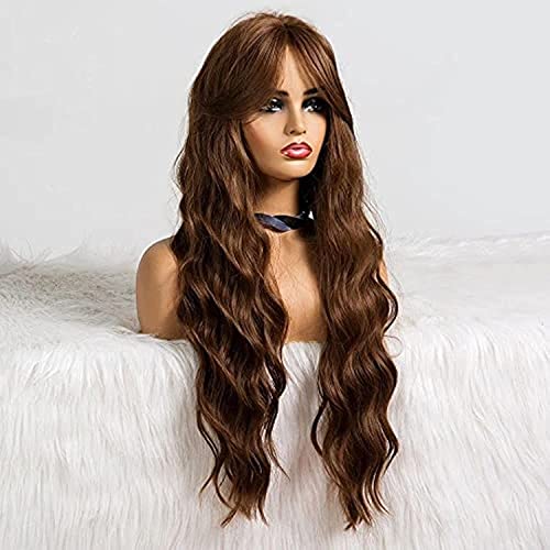 غير معروف - باروكة شعر مموجة بلون بني تبدو كالشعر الحقيقي مع غرة من الشعر الصناعي