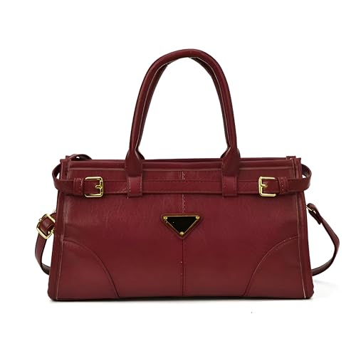 Generic - Brown Faux Leather Satchel - Stylish Structured Handbag with Dual Handles, Gold Accents, and Adjustable Shoulder Strap Featuring Distinct Triangle Logo for Day-to-Night Wear