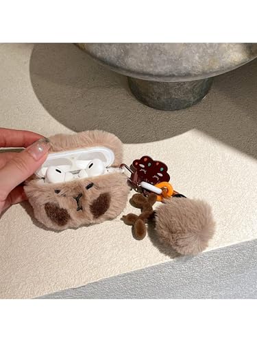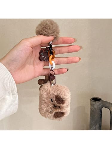 Generic - غطاء سماعات ايربودز بناتي فرو أشكال جذاب ومرحة شتوي أكثر أنيقة و جمال حماية أكبر (Brown Teddy, APods.Pro 2)