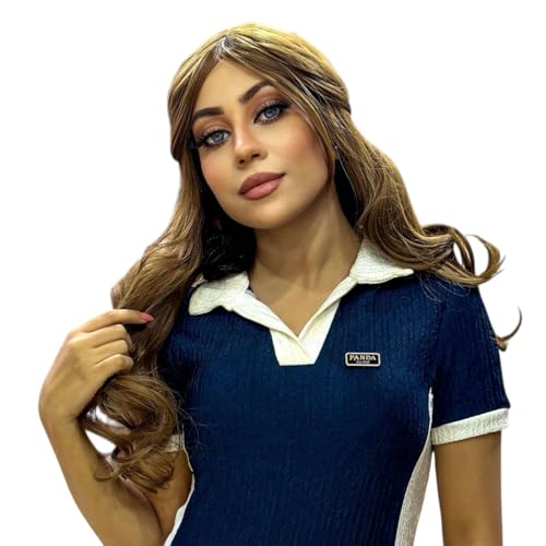 - شعر مستعار نسائي: شعر مستعار طويل بتصفيف مموج وطبيعي بلون بني مع خصل شقراء يمنحك إطلالة عصرية وجذابة
