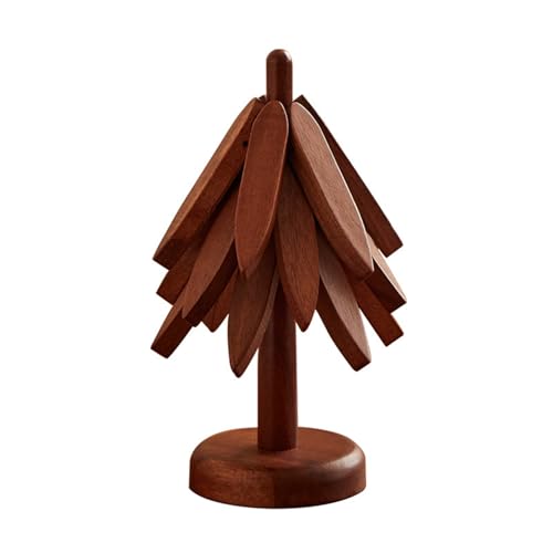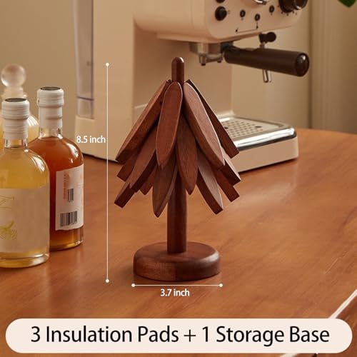 coutinfly - قاعدة أواني خشب للأطباق الساخنة على شكل شجرة، طقم حامل أواني خشب قابلة للطي، قاعدة أكواب للحلل والبولة وإبريق الشاي للمطبخ، طقم من 3 قطع، بني