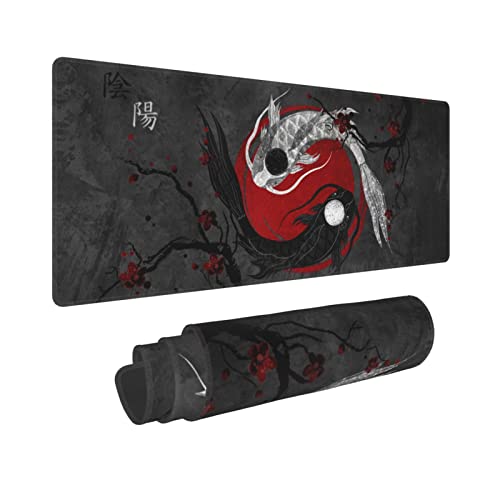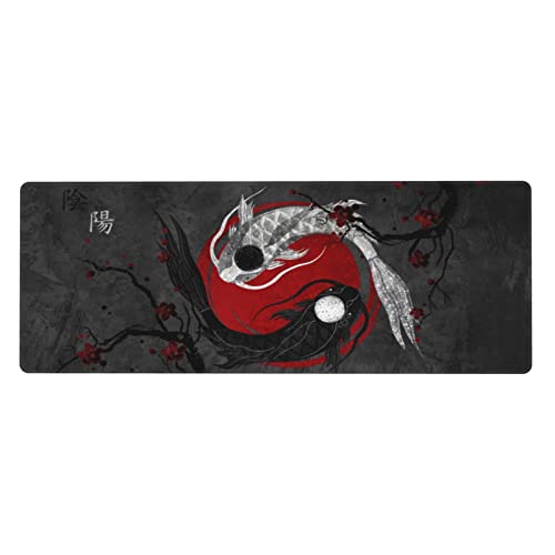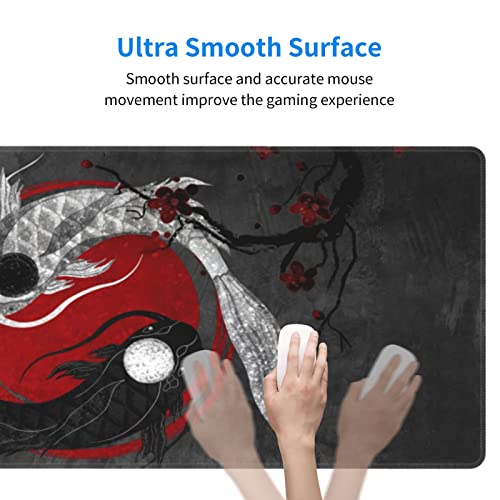 Browrsson - بادة ماوس ألعاب بتصميم ياباني فني، لوحة ماوس بنمط أسماك كوي بحواف مخيطة، قاعدة ماوس كبيرة للمكتب من براورسون، 80 × 30 سم