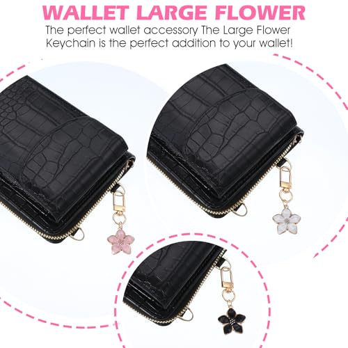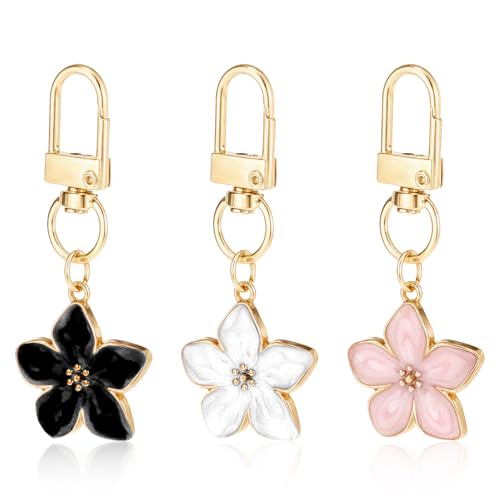 Bruislard - سلاسل مفاتيح صغيرة على شكل زهرة للنساء من بروسلارد 3 قطع، سلسلة مفاتيح لطيفة لحقيبة اليد، حلية سلسلة مفاتيح جمالية، حلقة مفاتيح مخصصة، تعليقة سحب بسحاب على شكل زهرة الكرز (اسود، ابيض، بينك)