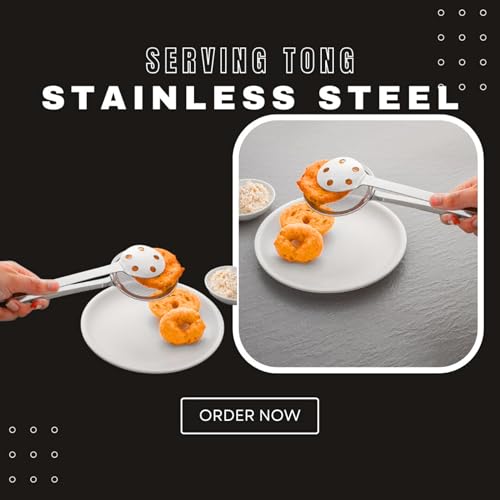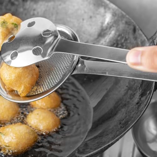 Brunchy - 2 in 1 Stainless Steel Deep Fry Strainer and Filter Spoon Set with Clip, Multi-Functional Strainer Pot, Restaurant Kitchen Equipment, 26 x 9 x 2 CM Snack Fryer Serving Tong