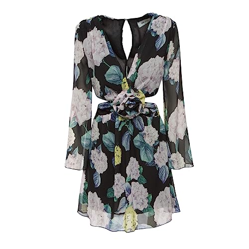 BSB - بي اس بي فستان نسائي مزين بالزهور مزين بالزهور - ملصق ذهبي, بلاك برينت، 42
