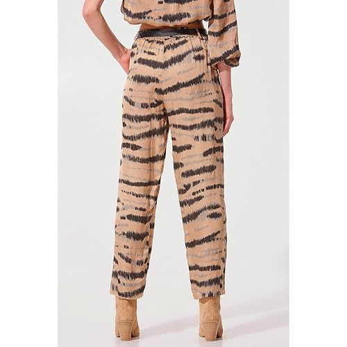 BSB - BSB Women Printed Trousers In Satin Touch S Beige Print