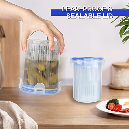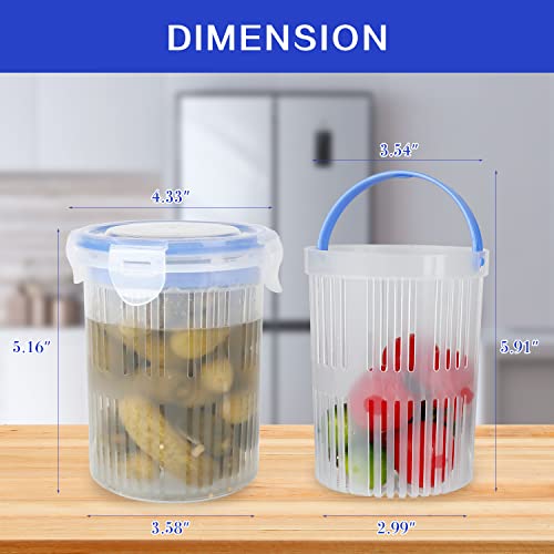 - Pickle Jar with Strainer: the pickle holder features a lift filter, helps you to separate pickles, olives or other food fragments from liquids quickly, and not wetting your hands