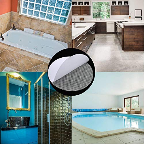 - Bathroom stickers: The non slip mat is round, 10 cm / 3.9 inches in diameter, and 1 mm / 0.04 inches thick.