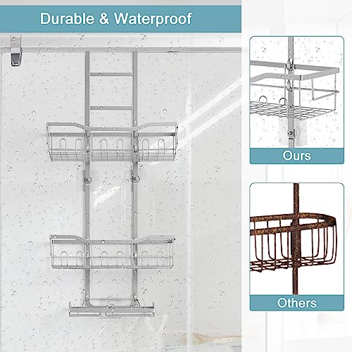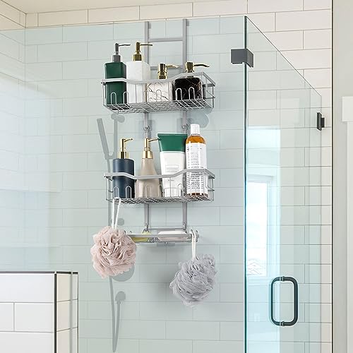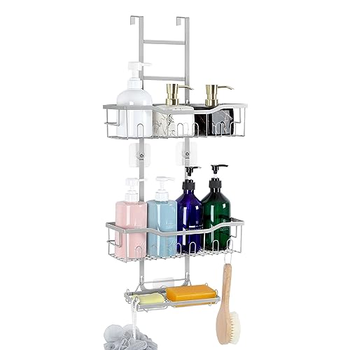 - 【Organize & Save Your Bathroom Space】 Are you still bothered by a cluttered bathroom? Once you bring home this over the door shower caddy, your bathroom will be neat and organized. Those cluttered bottles of shower gel, shampoo and face wash will have a new home, making it easy for you to reach them.