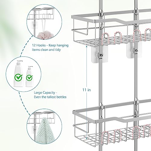 - 【Extended Design & Large Capacity】 We optimized the distance between the two shelves and extended it to 11" so that even the tallest shampoo bottles and body wash bottles can be stored. With 3 tiers, our shower organizer have a large storage capacity to meet your needs.