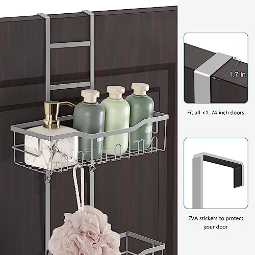 - 【3 Anti-slip Adhesive Strips & Stabilized Structure】 Adhesive strips with screw provides you with double protection, our over door shower caddy will not tilt forward due to unbalanced weight. We are equipped with 2 non-slip EVA stickers, which will protect your door from scratches.